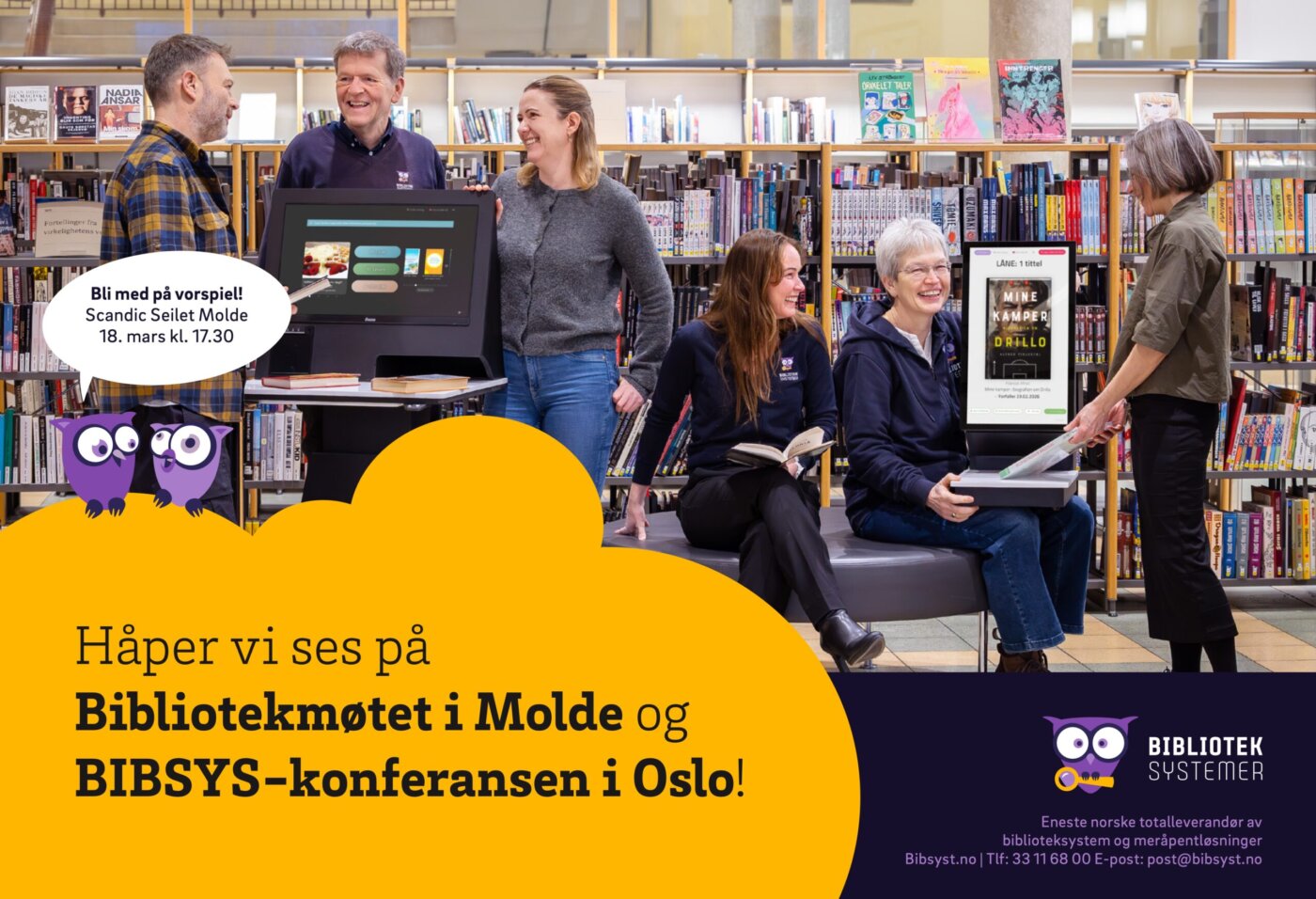 Vi håper alle som skal på Bibliotekmøtet i Molde kommer og hilser på oss på standen vår. Ikke minst håper vi så mange som mulig vil delta på Vorspiel før festmiddagen på onsdag. Da blir det quiz, noe godt i glasset, lave skuldre og god stemning!